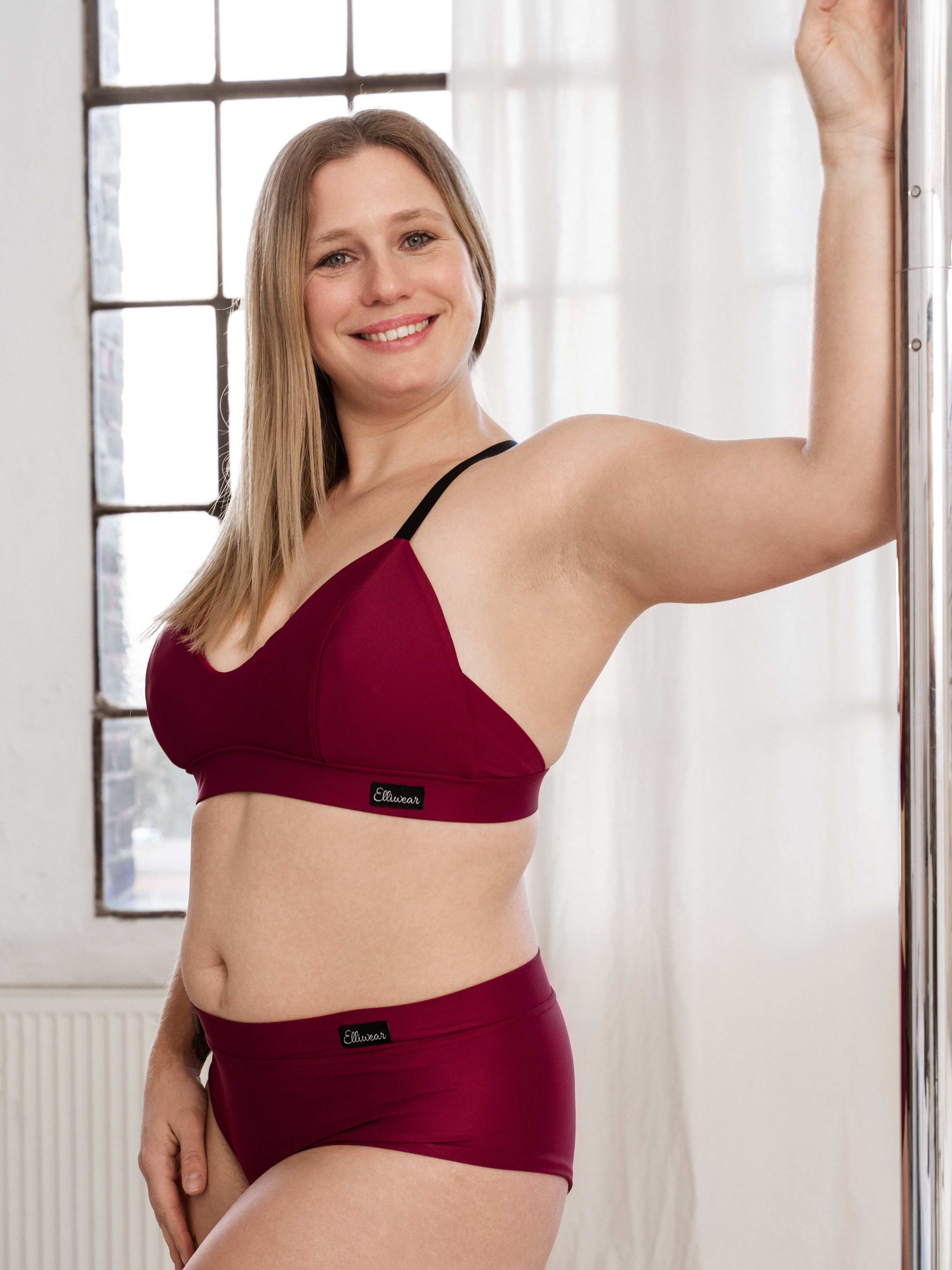 Mit einem breiten Gummiband im Bündchen ist Allegra rutschfest beim Poledance und ist nach dem Training flexibel auszuziehen. Die vorgeformten, weichen BH-Schalen geben deiner Brust eine natürliche, runde Form.